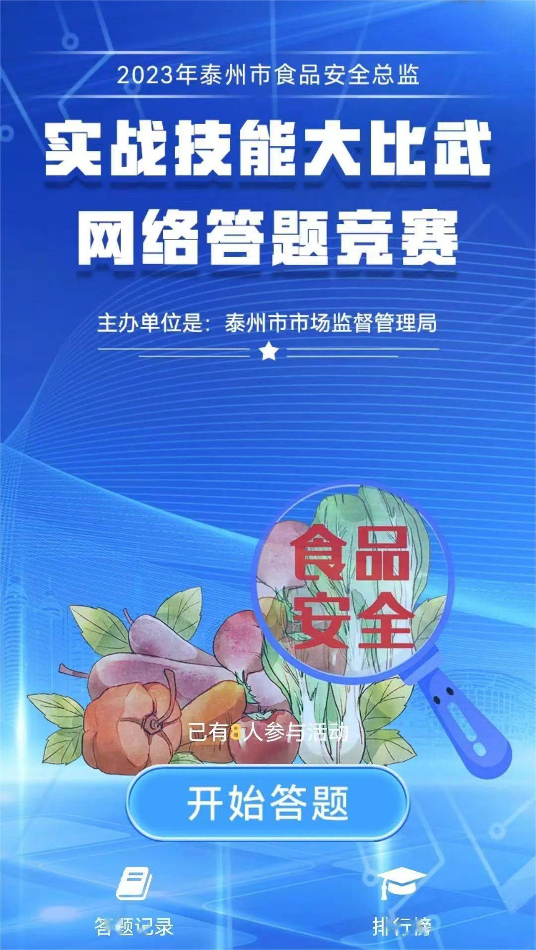 為深入貫徹落實《企業(yè)落實食品安全主體責任監(jiān)督管理規(guī)定》,推動食品安全“兩個責任”落地落實落細,提升企業(yè)食品安全管理水平和風險防控能力,促進泰州食品產業(yè)高質量發(fā)展,市市場監(jiān)管局組織開展首屆食品安全總監(jiān)實戰(zhàn)技能大比武活動。